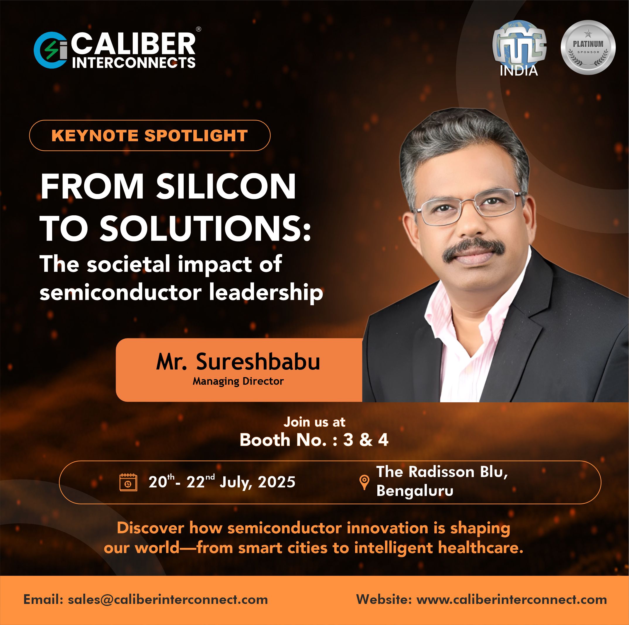 Titled “From Silicon to Solutions: The Societal Impact of Semiconductor Leadership,” the keynote will highlight how semiconductor innovation is driving real-world transformation—from powering smart cities to enabling intelligent healthcare and sustainable technologies. The event will be held from 20th to 22nd July 2025 at The Radisson Blu, Bengaluru, where Caliber will also be showcasing its advanced capabilities in semiconductor design, post-silicon validation, power electronics, and test automation at Booth No. 3 & 4.