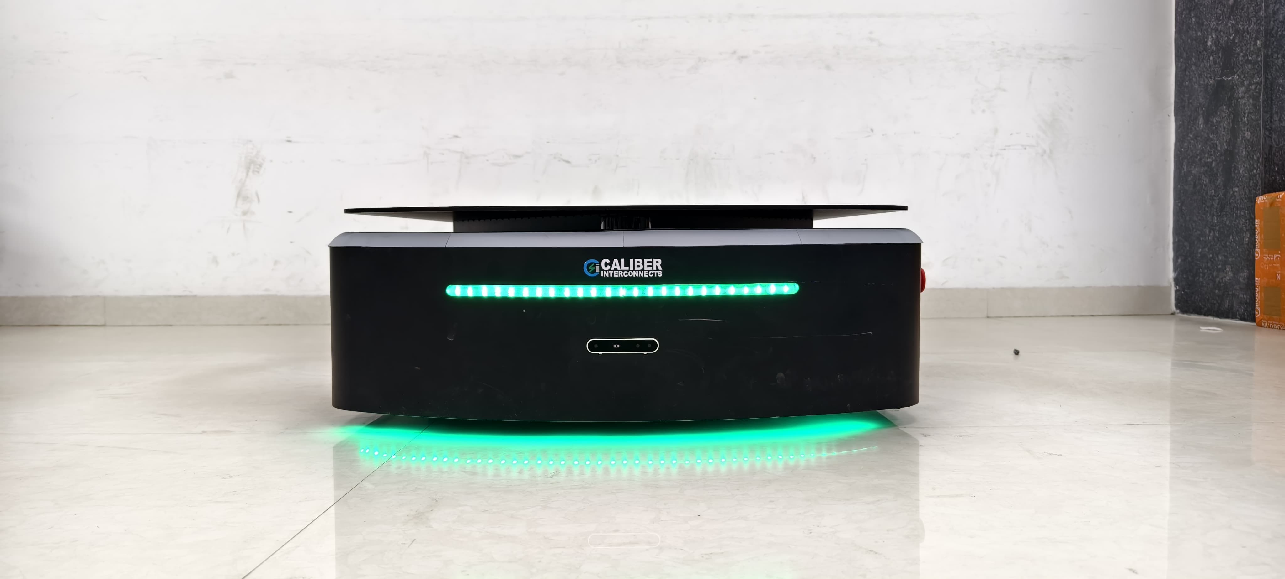 solutions for existing material transport operations. Our highly versatile Autonomous Mobile Robots (AMR) utilize cutting-edge machine learning and artificial intelligence algorithms along with robust navigation technologies like LiDAR , onboard camera with auto docking charging to adapt smartly to any environment, continuously improving performance without operator intervention. In a groundbreaking move, Caliber focused to enhance operational efficiency and flexibility through the fusion of Autonomous Mobile Robots (AMR).